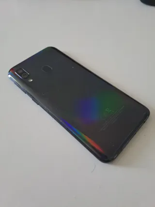 Samsung Galaxy A40 - 64 GB / 4 GB RAM - Schermo Super AMOLED da 5,9'' Full HD+ (colori vivaci, notch a goccia) - Fotocamera posteriore doppia: 16 MP + 5 MP (ultra grandangolare) - Fotocamera frontale da 25 MP - 64 GB di spazio di archiviazione + slot microSD (fino a 512 GB) - 4 GB di RAM, batteria da 3100 mAh con ricarica rapida - Dual SIM, 4G, NFC, USB-C, jack da 3,5 mm. Stato impeccabile, funziona perfettamente, senza rotture o gravi urti. Ideale come telefono secondario o regalo. Possibili spedizioni tramite Wallapop.