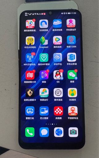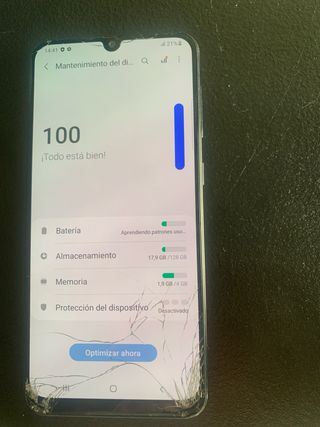 Telefono mobile Samsung Galaxy A50. Ha alcune crepe sullo schermo come mostrato nelle foto, ma si vede bene e funziona bene. - Grande schermo. - Design moderno. - Fotocamera versatile.