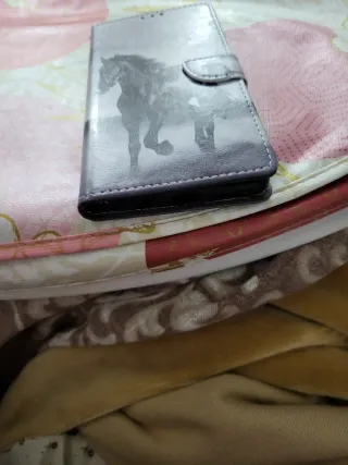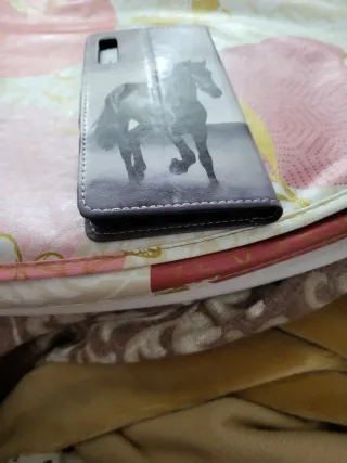 Custodia per Samsung Galaxy A50 con un design a cavallo. Design frontale con immagine di cavallo. Chiusura con pulsante a pressione.
