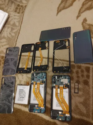 Due schermi A50 funzionano bene ma il microfono non funziona. Tutto a 30€. 3 batterie a 20€, una batteria a 7€. Tutto a 30€.