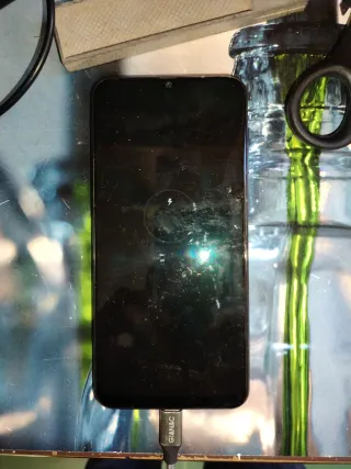 Telefono cellulare di colore nero. Per riparazione o smontaggio, quando si collega il caricabatterie appare il simbolo di carica, ma non si accende, credo sia un problema solo della batteria. Non presenta rotture né deterioramenti. - Schermo con protezione. - Porta di carica USB-C.
