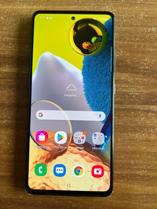 Samsung Galaxy A51 5G in buone condizioni. Include caricabatterie e cavo USB. Lo schermo è dotato di una pellicola protettiva in gel. Come regalo, una custodia per proteggerlo, che è dove l'ha portato.