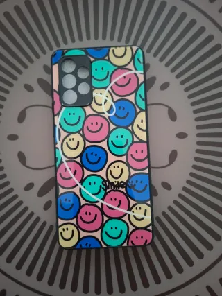 Custodia protettiva per Samsung Galaxy A52/A52 5G dal design allegro e cordino. - Design con arcobaleno e faccina sorridente. - Cavo in silicone bianco incluso. - Prodotto in Cina.