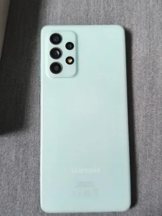 Telefono Samsung Galaxy A52s 5G. Capacità 256GB, RAM 8GB. Colore blu cielo. Viene fornito con caricabatterie. Sul retro qualche graffio ma molto leggero. Schermo in perfette condizioni.