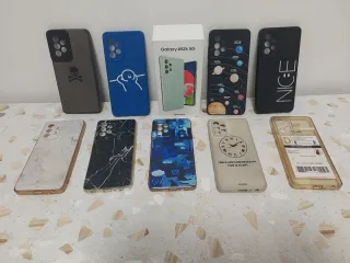 Tre cover per Samsung Galaxy A52. - Cover nera con protezione scorrevole per fotocamera. - Cover verde menta. - Cover blu con anello porta-smartphone. Vanno bene per i modelli A52 4G, A52s 4G e A52 5G Presentano vari segni di usura ma sono ancora utilizzabili