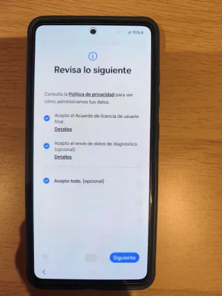 Vendo A52s 5G da 128GB, colore Awesome Black. Punti chiave: • Schermo 100% FUNZIONALE con protezione. Touch e visualizzazione perfette. • Includo scatola originale e due custodie (blu e trasparente). DETTAGLI ESTETICI: Ha un chip sul vetro dell'angolo (vedi foto). È solo il vetro esterno, il cellulare funziona perfettamente. Ideale per chi cerca un cellulare potente e non gli importa il dettaglio estetico a un prezzo imbattibile. NESSUN CAMBIO. Consegna a mano o spedizione tramite Wallapop.