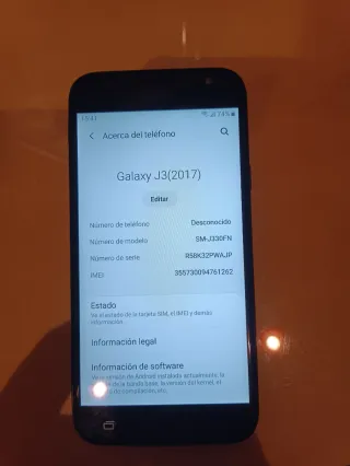 Telefono cellulare Samsung Galaxy J3 2017 in ottime condizioni. - Schermo da 5 pollici. - Fotocamera posteriore da 13 MP. - Fotocamera frontale da 5 MP. - Batteria da 2400 mAh. Telefono cellulare Samsung Galaxy J3 2017 in perfette condizioni. - Schermo da 5 pollici. - Fotocamera posteriore da 13 MP. - Fotocamera frontale da 5 MP. - Batteria da 2400 mAh. SOLO CELLULARE. PREZZO 35 EURO NON TRATTABILI. Consegna a mano a Valladolid zona Pajarillos o spedizione tramite Wallapop.