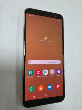 Telefono cellulare Samsung Galaxy J6. - Schermo da 5,6 pollici. - Fotocamera posteriore da 13 MP. - Fotocamera frontale da 8 MP. - Batteria da 3000 mAh. Il nostro si è scaricato come vedete nella foto sui lati ma dell'uso, ma il telefono funziona come un razzo, schermo perfetto, posteriore molto buono, solo che ha il suo tempo, ma Android funziona e tutto è perfetto.