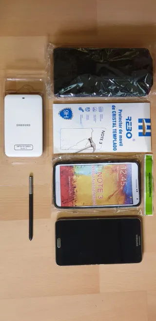 Telefono cellulare Samsung Galaxy Note 3 in colore nero. Include: - Batteria extra. - Caricabatterie esterno. - Accessorio di ricarica wireless. - Vetro protettivo per lo schermo non installato. - Custodia di pelle per il trasporto. - Penna interna più una di riserva. Il cellulare è impeccabile. Non ha graffi o segni sullo schermo. Nella confezione ci sono piccoli segni visibili nelle ultime due foto. Ha uno slot per espandere la memoria fino a 128Gb. - Grande schermo, immagine e colori perfetti. - Design elegante.
