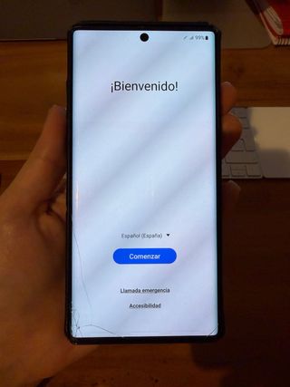 Telefono mobile Samsung Galaxy Note 10+ in colore bianco. Lo schermo è in perfette condizioni. - Schermo da 6,8 pollici. - 12 GB di RAM. - Tripla fotocamera posteriore. - Archiviazione interna da 256 GB. Il lettore di schede di memoria micro SD non rileva più la scheda, è l'unico problema. Il resto è perfetto.