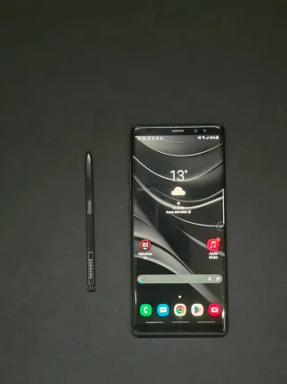 Telefono cellulare Samsung Galaxy Note 8 con finitura nera. E' un telefono che ha già il suo tempo, ma si trova in perfetto stato, sia estetico che funzionale. Senza graffi o urti, perché ha sempre portato protettori, schermo perfetto, s-pen perfetto. Viene fornito nella confezione originale con tutti gli accessori di fabbrica, tranne il cavo usb. Rispetto ai telefoni attuali, è un terminale molto leggero, sottile e con un buon formato dello schermo per le sue dimensioni. Capacità di archiviazione 64GB.