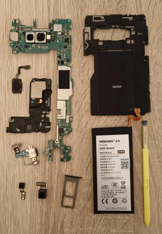 Ricambi per Samsung Galaxy Note 9. Per montare un nuovo telefono su un nuovo schermo. - Scheda madre. - Batteria Nohon 4000mAh. - Fotocamera anteriore e posteriore. - Modulo audio. - Lettore SIM. - Lettore di impronte. - S Pen. - Custodia.