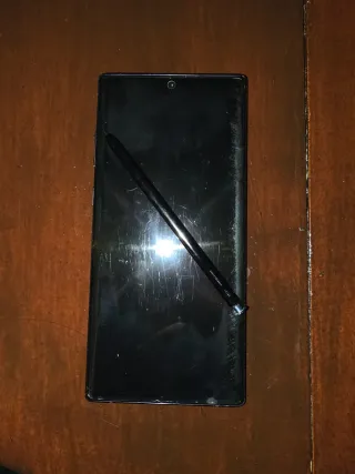 Telefono mobile Samsung Galaxy Note 10 Plus in colore nero. È in buone condizioni, manca il vetro posteriore, circa 5 euro su AliExpress. - Grande schermo. - Include S Pen. - Include scatola originale. - Include caricatore e cavo di ricarica.