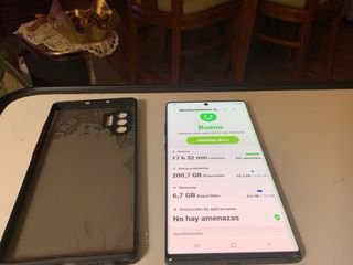 Telefono mobile Samsung Galaxy Note 10 con 256GB di spazio di archiviazione. Funziona bene, l'unica cosa è che la parte posteriore è rotta, per il resto è tutto a posto. - Schermo AMOLED. - Include S Pen.