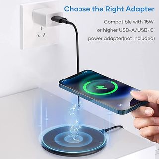 Caricabatterie wireless a induzione di colore nero. Design circolare moderno. Bordo con luce LED verde. Caricabatterie wireless rapido, caricatore a induzione Qi compatibile con iPhone 14/15/13/12/11/Pro/XS Max/XR/XS/X, AirPods 2/3/Pro, Samsung Galaxy S23/S22/S21/S10/S9/S8/Note 20/10.