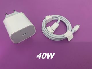 Adattatore di corrente e cavo per carica rapida. - Carica Rapida 40W - 2 cavi bianchi tipo Lightning e Tipo C - Prodotti compatibili: iPhone 16/16 Plus/16 Pro/16 Pro Max/15/15 Plus/15 Pro/15 Pro Max/14/14 Plus/14 Pro/14 Pro Max/13/13 Pro/13 Pro Max/13 Mini/12 Series, Samsung Galaxy S24/S24+/S24 Ultra/S23/22/Note 20/10/10+ Series, iPad Pro/Mini/Air