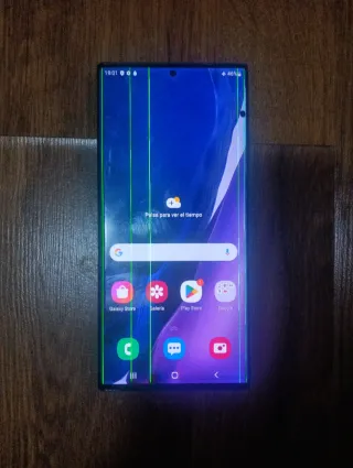 Telefono mobile Samsung Galaxy Note 20. Funziona perfettamente, solo che ha una linea verde visibile nella foto, non influisce sul funzionamento, ma bisognerebbe cambiare lo schermo. Sempre con protezione per lo schermo e custodia. Nella sua scatola con tutti gli accessori, caricabatterie, ecc. Oviedo.