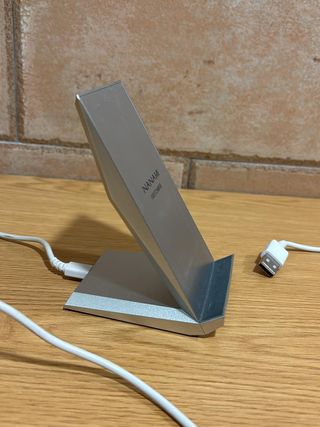 Caricabatterie wireless con design moderno ed elegante. - Finitura metallica argentata. - Supporto verticale per il posizionamento del dispositivo. - Indicatore di carica rapida. Caricabatterie Wireless Nanami, Qi Wireless Fast Charge 10W e Standard 5W per iPhone XS/XS MAX/XR/X/8 Plus/8, Caricabatterie Wireless Quick per Samsung Galaxy S9+ S9 S8 Plus S8 S7 Note8, ecc. Il costo è stato di 17,84€.
