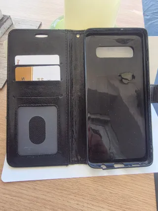 Come nuova! Vendo custodia in pelle sintetica di alta qualità per Samsung Galaxy S10 Plus (S10+). Molto pratica ed elegante. Colore: Nero classico con finitura testurizzata. Design 2 in 1: Funziona come custodia protettiva e portafoglio. Capacità: Include 3 scomparti per carte (uno con finestra trasparente per documento/foto) e un vano interno per banconote. Chiusura magnetica: Lembo di sicurezza per evitare l'apertura accidentale. Pelle sintetica.