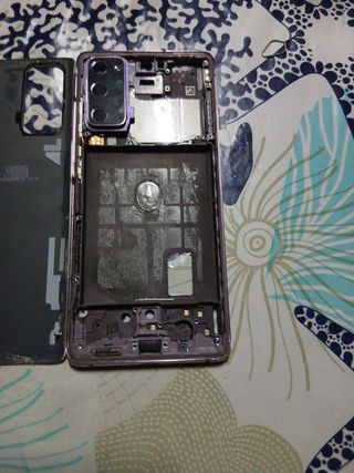 Coperchio posteriore della batteria originale per Samsung Galaxy S20 Fe 4G/5G. Parte usata rimossa da un terminale difettoso che mostra segni di utilizzo ma nessuna rottura.