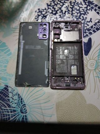 Cover posteriore per Samsung Galaxy S20 FE 5G o simile. Presenta segni d'uso. - Include la cover posteriore e il vetro delle fotocamere. - Colore viola rosa. - In buone condizioni generali, anche se con alcuni segni d'uso è un Samsung originale