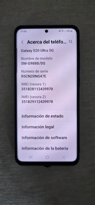 Telefono mobile Samsung Galaxy S20 Ultra 5G. Modello: SM-G988B/DS. È il modello da 128 GB.