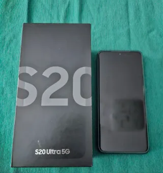 Telefono mobile Samsung Galaxy S20 Ultra 5G in colore nero. Funziona come nuovo. Include custodia e protezione. Grande e nitida schermo. Fotocamera ad alta risoluzione. Connettività 5G.