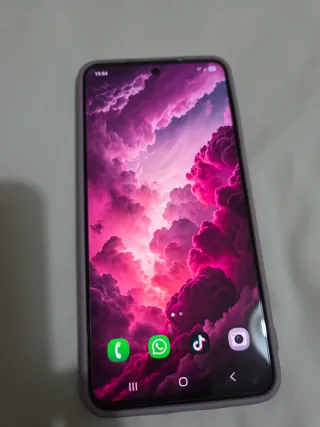 Telefono cellulare Samsung Galaxy S21 FE in un accattivante colore rosa e viola. Include custodia e protezione per lo schermo nuovi. Display vibrante. Design moderno.