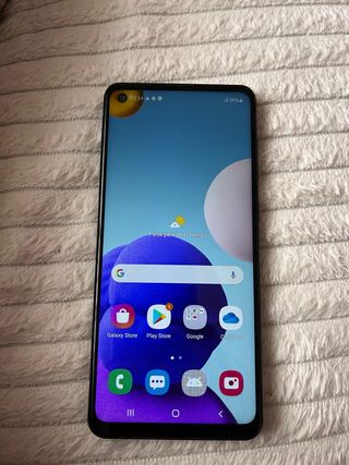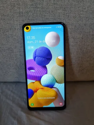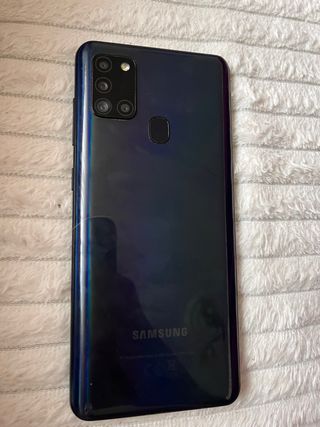 Telefono mobile Samsung Galaxy A21s con grande capacità di archiviazione. Piccolo urto nell'angolo che interessa solo il vetro. Lo schermo è perfetto. 4GB di RAM, 128GB di memoria interna.