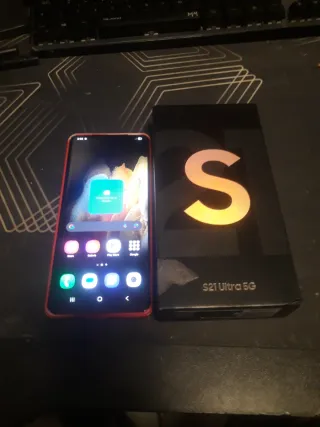 Telefono mobile Samsung Galaxy S21 Ultra con 128GB di spazio di archiviazione. -Con la sua scatola e cavo di ricarica. -Coperchio nuovo. -I segni di usura sullo schermo sono visibili nelle foto. -Tutto funziona perfettamente. -Schermo ad alta risoluzione. -Fotocamera versatile per foto e video. -Design elegante e moderno.