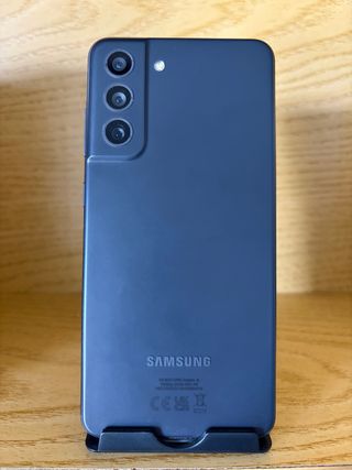 Telefono mobile Samsung Galaxy S21 FE in colore grigio. Include: - Cover protettiva nera. - Scatola originale. - Documentazione: guida rapida e scheda di garanzia. Un cellulare che funziona ancora molto bene oggi.