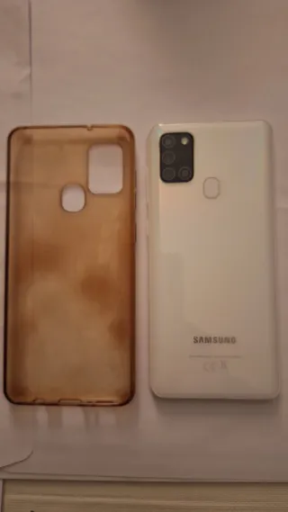 Telefono cellulare Samsung Galaxy A21S. È piuttosto usato e lo schermo è leggermente bruciato, ma funziona bene. Per chi è interessato a usarlo come telefono temporaneo, non ci sono problemi con 64 GB di spazio di archiviazione e 4 GB di memoria RAM.