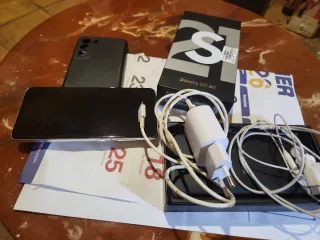 Telefono mobile Samsung S21+ 5G con 256GB di spazio di archiviazione, in buone condizioni con lievi segni d'uso, visibili nelle immagini fornite, viene fornito con una custodia nera ma senza altri accessori o scatola. - Schermo ad alta risoluzione. - Fotocamera versatile per foto e video. - Connettività 5G per velocità elevate.