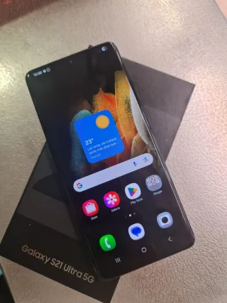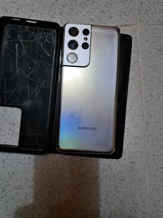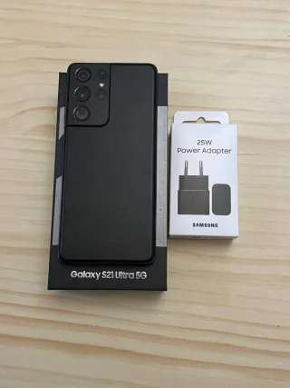 Telefono mobile Samsung Galaxy S21 Ultra in colore nero. Ampio e nitido schermo. Sistema di fotocamere versatile. Design elegante e moderno. Presenta segni d'uso ma non influisce sul telefono. Con scatola inclusa. Prezzi negoziabili.