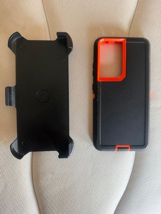 Custodia protettiva per Samsung Galaxy S21 Ultra in due parti. - Parte interna nera. - Parte esterna arancione. - Design resistente.