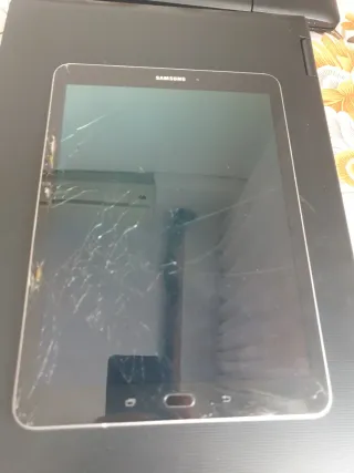 Tablet Samsung Galaxy Tab S3 in colore nero. Lo schermo presenta crepe visibili. Il vetro rotto! Lo schermo sembra ok. Non si accende! Non carica! Rotta per pezzi! Senza caricatore! - Modello: Galaxy Tab S3 - Colore: Nero