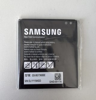 Batteria di ricambio per dispositivi Samsung. Modello: EB-BG556GBY, S/N: DL1X918AS/2-, Codice: GH43-05199A, Tecnologia: Near Field Communication.