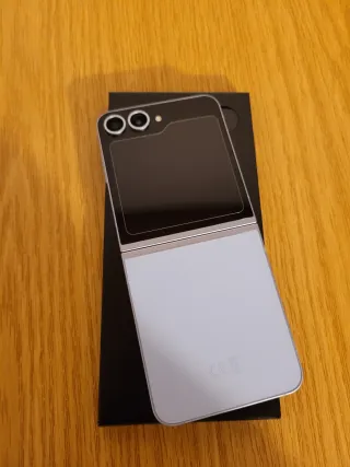 Telefono cellulare pieghevole Samsung Galaxy Z Flip 6. Colore blu e argento. Design pieghevole. Nuovo. Prezzo negoziabile.