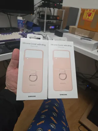 Cover in silicone rosa per Samsung Galaxy Z Flip4. Include un anello per una presa più sicura. Sono nuove e originali. Vendo in confezione da 2. Materiale: silicone. Colore: rosa. Modello compatibile: Galaxy Z Flip4.