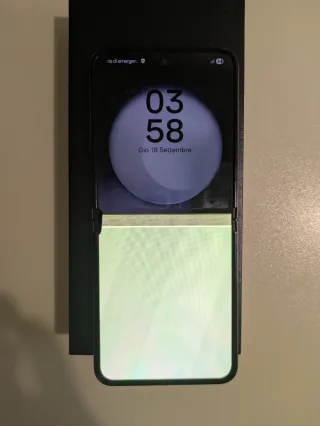 Telefono cellulare Samsung Galaxy Z Flip 3 5G. funziona perfettamente, poco utilizzato ma non si può aprire completamente (vedi ultima foto). Design pieghevole. Connettività 5G.