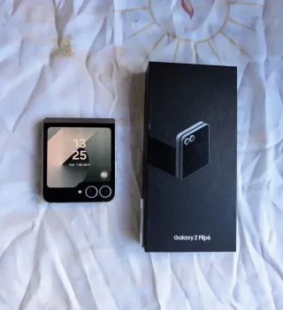 Telefono mobile Samsung Galaxy Z Flip 6 in colore nero. Design pieghevole. Finitura brillante. Vendo per acquistare il 7. 450 ciascuno. In regalo custodie originali e altre nuove acquistate.