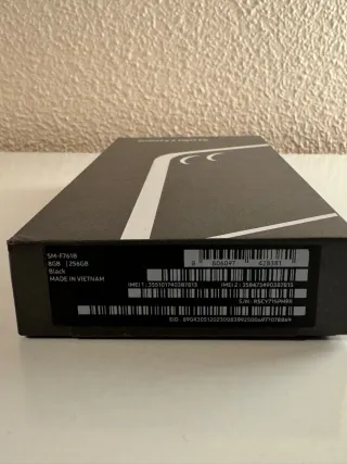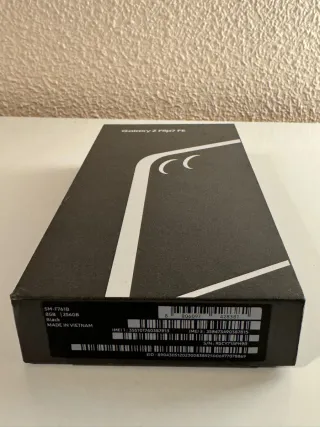 Scatola originale per il Samsung Galaxy Z Flip5 in colore nero. Design elegante e minimalista. Protezione per il tuo dispositivo.