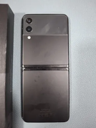 Telefono cellulare Samsung Galaxy Z Flip 3 5G in colore nero. Funziona perfettamente. Cerniera senza problemi. Ben conservato. Deterioramento normale d'uso. Capacità di 256 GB.