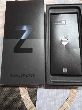 Telefono mobile Samsung Galaxy Z Flip3 5G con finitura nera. Sempre con custodia e protezione per lo schermo. Schermo non rotto che si piega, non è mai stato piegato. Ha un piccolo urto sullo schermo che non influisce sul suo funzionamento, lo schermo non è rotto. Accessori non usati e scatola originale. Protezioni per lo schermo aggiuntive.