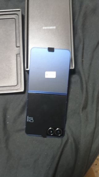 Scatola originale per il Samsung Galaxy Z Flip5 in colore nero. Design elegante e minimalista. Protezione per il tuo dispositivo.