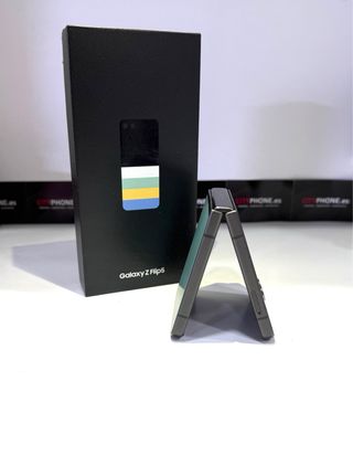 Telefono mobile Samsung Galaxy Z Flip3 5G con finitura nera. Sempre con custodia e protezione per lo schermo. Schermo non rotto che si piega, non è mai stato piegato. Ha un piccolo urto sullo schermo che non influisce sul suo funzionamento, lo schermo non è rotto. Accessori non usati e scatola originale. Protezioni per lo schermo aggiuntive.