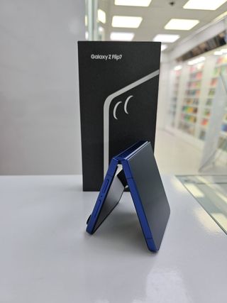 Telefono cellulare Samsung Galaxy Z Flip 7 in colore blu. - Capacità di archiviazione di 256 GB. - Stato seminuovo, pronto per l'uso. - Con 2 anni di garanzia e fattura a nome del cliente 👌 Possibile scambio con un altro cellulare 📱