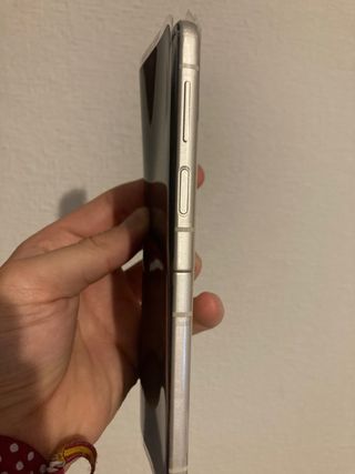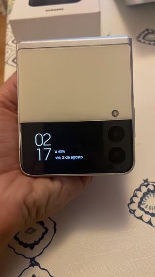 Vendo prezioso Samsung Galaxy Z Flip3 5G in colore beige e argento. Ha una capacità di archiviazione di 256 GB. Ha un piccolo colpo nell'angolo inferiore che non influisce sulla sua funzionalità, con il telefono acceso non si nota. - Include scatola originale. - Fabbricato in Vietnam.