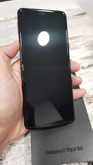 Samsung Galaxy Z Flip3 5G -8/ 256GB - Phantom Black (usato). Il telefono e di quelli pieghevoli è tutto funzionante, il display ha una piccola macchia nera sul bordo a destra all'altezza della piega ma non ne pregiudica il funzionamento , è libero da password e account Google, viene venduto così come si vede, con la sua scatola,senza cavo e caricabatteria. Più una cover in plastica. Guardare e leggere bene non accetto lamentele.