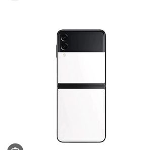 Il telefono Samsung Galaxy Z Flip 3 da 256GB in bianco non si apre completamente, il prezzo è di 256GB. Colore bianco.